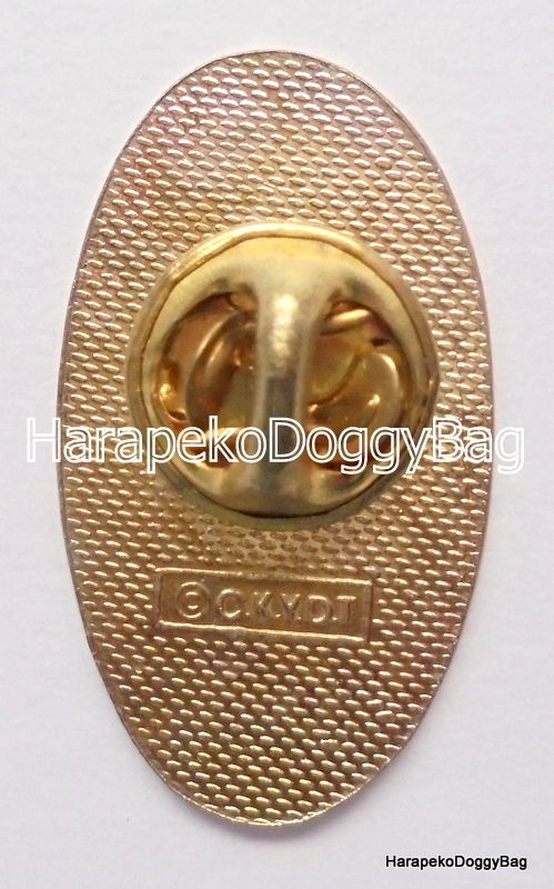 The metal pin is a promo item that was sold with Furuta chocolate snack.