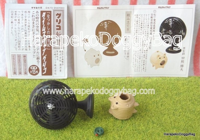 Glico Toys : Time Slip : Miniature Retro Black Fan & Pig Katori Senko Set