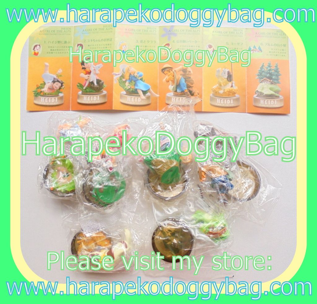 Here is a full set of 6 figures from the "Heidi Girl of the Alps Anime Bottle Cap Figure Collection" series released by Kaiyodo in 2006.