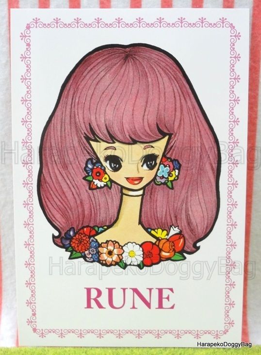 Keywords: Retro, Japanese, Japan, Rune Naito, Manga Artist, Kawaii, Cute, Fashionable, Girl, Girly, Shojo, Shoujo, Big Eyes, Lady, Flowers, Illustration, Postcard, 2012.