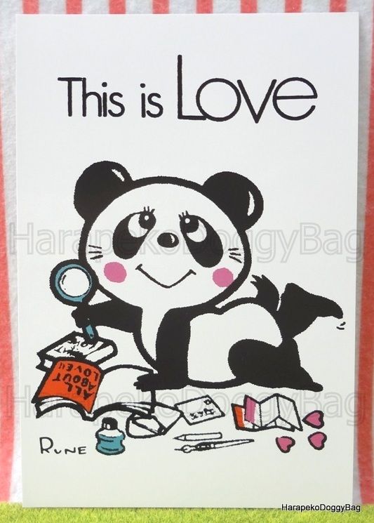Retro : Kawaii Panda Postcard : This is Love : Illustration by Rune Naito