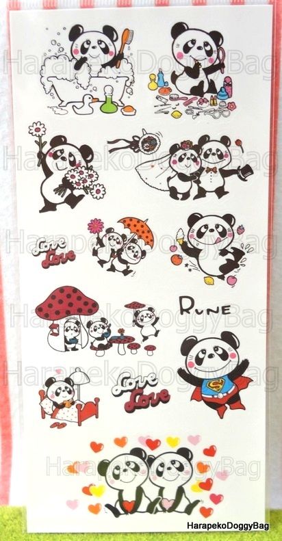Retro : Kawaii Panda Sticker Sheet : Love Love : Illustrations by Rune Naito