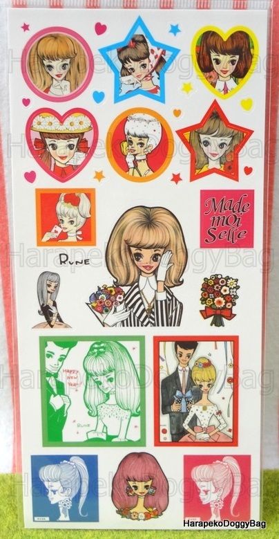 Keywords: Retro, Japanese, Japan, Rune Naito, Manga Artist, Kawaii, Cute, Fashionable, Girl, Girly, Shojo, Shoujo, Big Eyes, Lady, Mademoiselle, Illustration, Sticker Sheet, Stickers, 2012.
