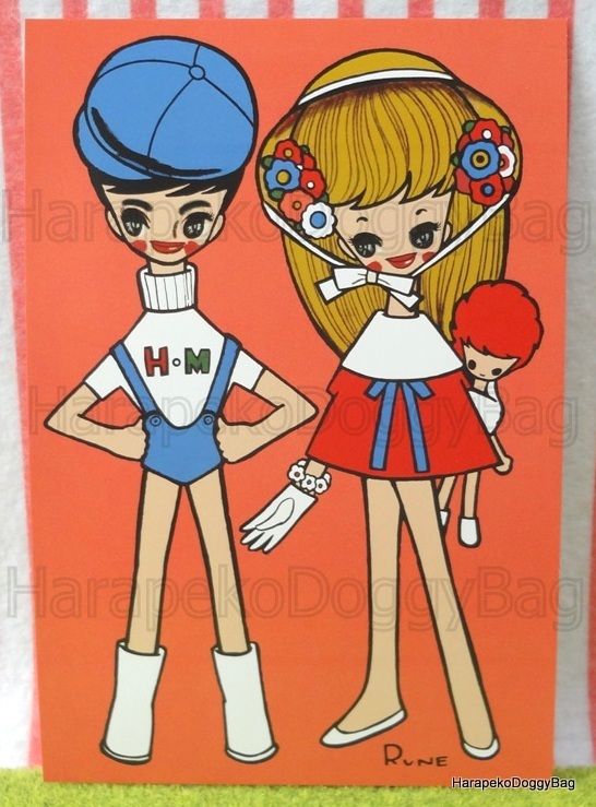 Keywords: Retro, Japanese, Japan, Rune Naito, Manga Artist, Kawaii, Cute, Fashionable, Boy, Girl, Girly, Shojo, Shoujo, Big Eyes, Illustration, Postcard, 2012.