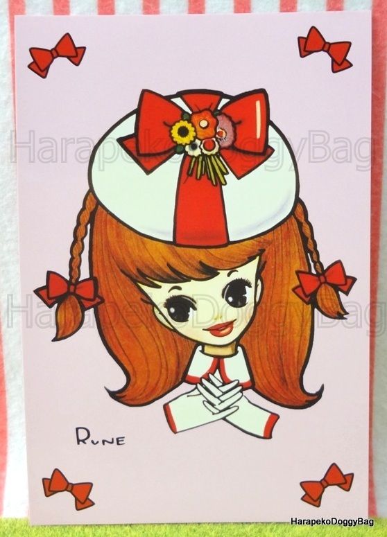 Keywords: Retro, Japanese, Japan, Rune Naito, Manga Artist, Kawaii, Cute, Fashionable, Girl, Girly, Shojo, Shoujo, Big Eyes, Lady, Ribbons, Illustration, Postcard, 2012.