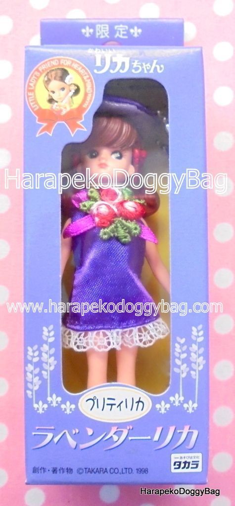Here is a miniature Licca Chan doll from the "Lavender Licca" series by Takara Toys from 1998.