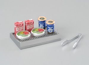 MEGAHOUSE SET CONDITION: This set is from 2005 and is in new and unused condition. Please note that the outer sealed plastic packaging is very creased from handling. The plastic packaging has been cut and the parts containing the salad pieces, the tongs, the paper bread bag and the paper info card are missing. The stickers on the pink drink packets have aged.