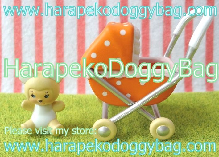 Keywords: Megahouse, Mini Collection, Japanese Toys, Miniatures, Miniature, Dollhouse, Doll House, Puchi, Mini, Happy Story Series, Baby Collection, Miniature Retro Orange Baby Stroller & Teddy Bear, 2004.