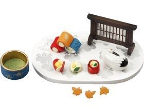 Keywords: Megahouse, Japanese Toys, Miniatures, Dollhouse, Doll House, Puchi, Mini, Kawaii, Cute, Traditional Japanese Sweets, Wagashi, Green Tea, Screen, Crane Bird.