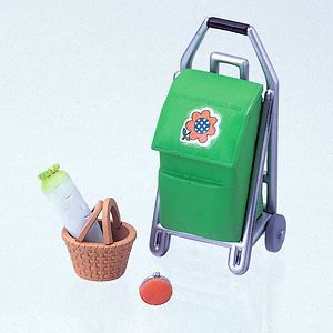 Keywords: Megahouse, Mini Collection, Japanese Toys, Miniatures, Miniature, Dollhouse, Doll House, Puchi, Mini, Retro, Nostalgic Shopping Street, Miniature Retro Shopping Bag with Wheels, 2004.