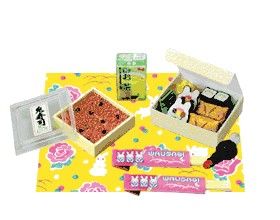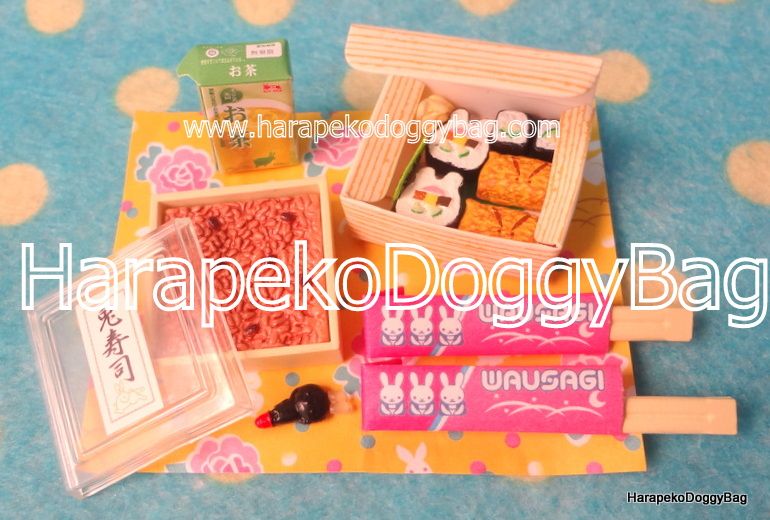 Keywords: Megahouse, Japanese Toys, Miniatures, Dollhouse, Doll House, Puchi, Mini, Kawaii, Rabbit Dessert Shop, 2006, Omiyage Sushi Set, Souvenir, Bento Box, Sushi Rice, Chopsticks, Soy Sauce, Green Tea Drink.
