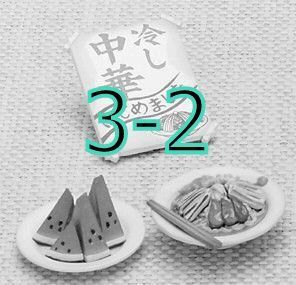 Keywords: Megahouse, Japanese Toys, Miniatures, Dollhouse, Doll House, Puchi, Mini, Kawaii, Cute, Food, Cold Noodles, Watermelon, Chopsticks, Plate, Sign, Color Variation Set.