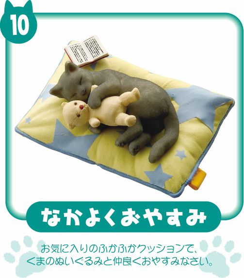 Re-ment Miniatures : Petit Animal Series Puchi Cat Diary (2007) #10 - Miniature Cat Sleeping & Teddy Bear