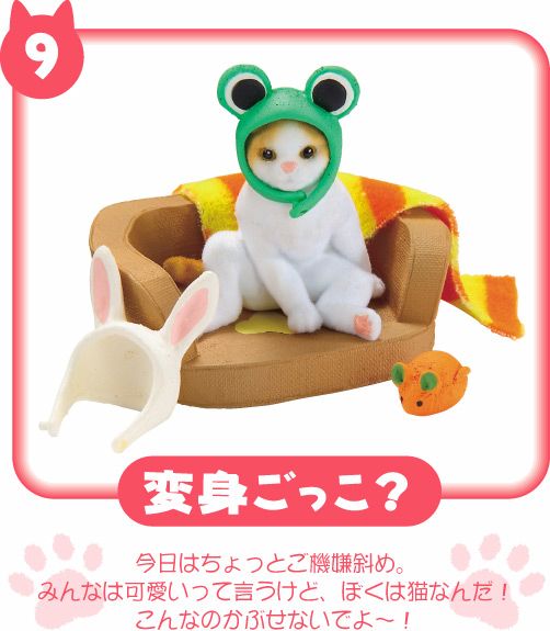 Re-ment Miniatures : Petit Animal Series Puchi Cat Diary (2007) #9 - Miniature Cat Sitting With Animal Hats