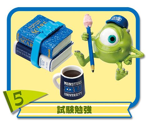 Keywords: Re-ment, Rement, Japanese Toys, Miniatures, Miniature, Dollhouse, Doll House, Puchi, Mini, Created With Love in Japan, Monsters University Campus Life, Miniature Study Books & Coffee Mug, 2013.