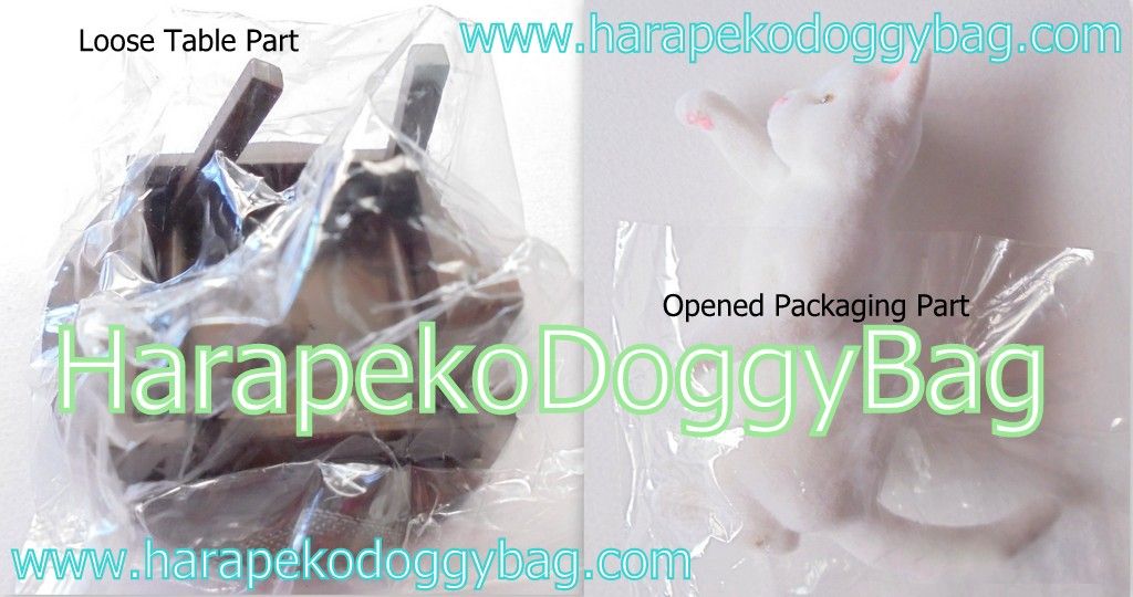 RE-MENT SET CONDITION: This set is from 2007 and is in unused condition. Overall, it is in near excellent condition. One set of legs on the table piece is loose and moves when it should be stuck in place. It may need to be glued back into place. The outer plastic packaging is very wrinkled. Also, a part of the packaging which was not sealed tightly has opened. The items in the opened parts remain in unused condition.