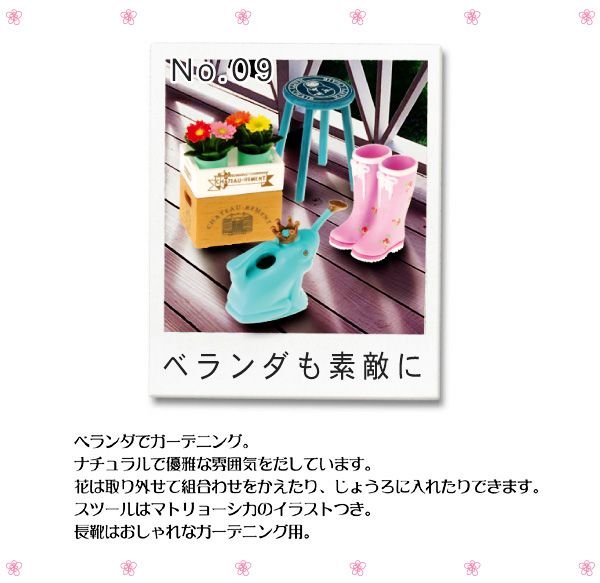 Keywords: Re-ment, Rement, Japanese Toys, Miniatures, Miniature, Dollhouse, Doll House, Puchi, Mini, Created With Love in Japan, Puchi Petite Sample Series, Storage Beauty, Miniature Garden Patio Boots & Flowers, 2007.