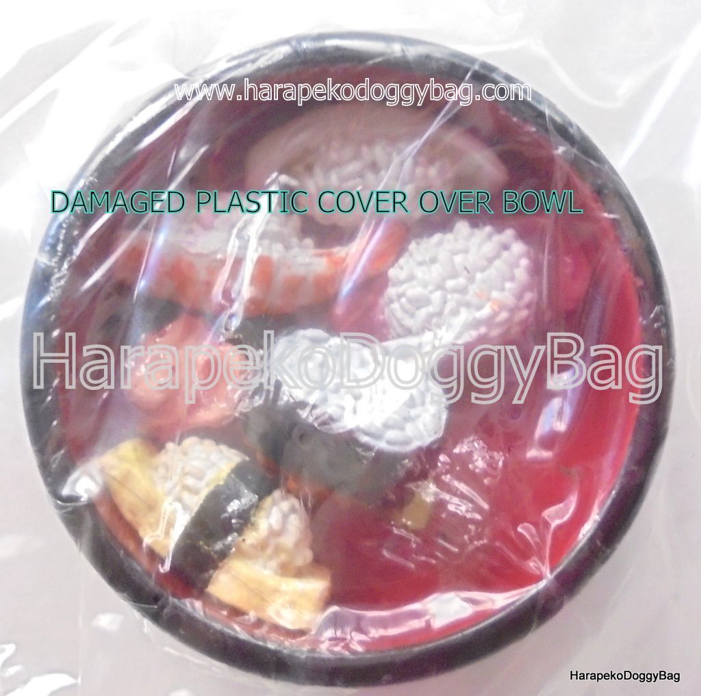 PLEASE NOTE BEFORE PURCHASING: As seen in the photo, the plastic film cover over the sushi bowl piece is damaged. Also, the paint on the sushi pieces have stuck to the bowl leaving marks on the pieces.
