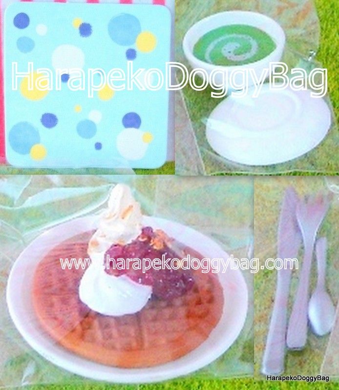 Keywords: Re-ment, Rement, Japanese Toys, Miniatures, Miniature, Dollhouse, Doll House, Puchi, Mini, Kawaii, Cute, Cafe Food, Waffle, Red Beans, Azuki, Matcha Green Tea Latte, Cutlery, Placemat, Cup, Drink.