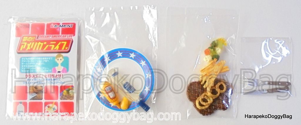 Keywords: Re-ment, Rement, Japanese Toys, Miniatures, Dollhouse, Doll House, Puchi, Mini, Dreamy American Life, America, USA, Secret, HTF, Rare, Steak Dish, Cutlery, Fries, Cocktail, Drink, Mustard Sauce.