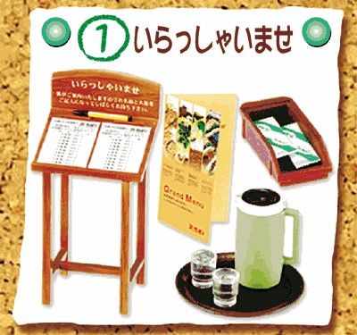 Keywords: Re-ment, Rement, Japanese Toys, Miniatures, Dollhouse, Doll House, Puchi, Mini, Kawaii, Cute, Everyone at the Family Restaurant, Menu, Waiting List, Water, Flask, Glasses, Wet Towels, Pen, Tray.
