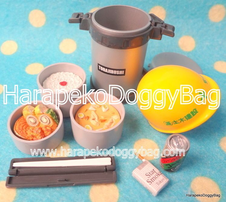 Keywords: Re-ment, Rement, Japanese Toys, Miniatures, Dollhouse, Doll House, Puchi, Mini, Everyone's Lunch, Bento Box, Worker, Helmet, Coffee Can, Flask, Cigarettes, Chopsticks, Rice, Miso Soup, Salmon Fish.