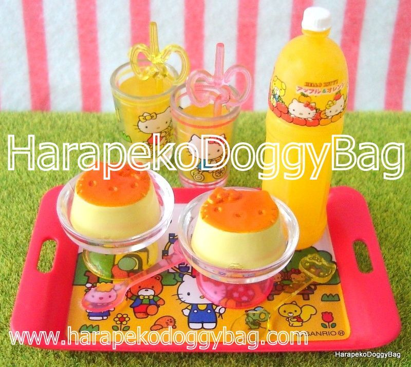 Keywords: Re-ment, Rement, Japanese Toys, Miniatures, Dollhouse, Doll House, Puchi, Mini, Sanrio, Hello Kitty, My Meals, Kawaii, Cute, Food, Dessert, Tray, Pudding, Straw, Glasses, Drink, Spoon, Orange Juice, Bottle.
