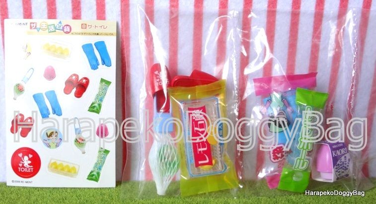 Keywords: Re-ment, Rement, Japanese Toys, Miniature, Miniatures, Dollhouse, Doll House, Puchi, Mini, Kawaii, Cute, Kitchen and Household Goods, Rubber Gloves, Toilet Slippers, Kitchen Deodorizer, Toilet Deodorizer Lemon Shaped Soap Bar, Cleaning Products, Secret Set, Rare, HTF, Color Variation.