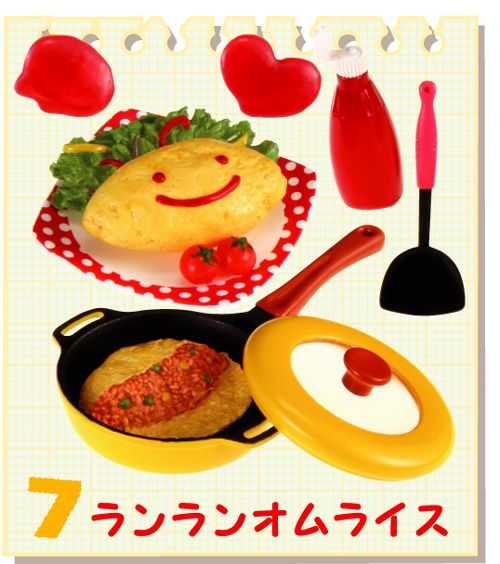 Keywords: Re-ment, Rement, Japanese Toys, Miniatures, Dollhouse, Doll House, Puchi, Mini, Kawaii, Cute, Mom's Happy Kitchen, Food, Shiawase, Cooking, Frying Pan, Omelette, Omurice, Ketchup, Lid, Plate, Rice.