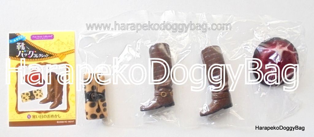Keywords: Re-ment, Rement, Japanese Toys, Miniatures, Dollhouse, Doll House, Puchi, Mini, Kawaii, Cute, Petite Mode Bag and Shoe Collection, Brown Boots, Red Fedora Hat, Animal Skin Clutch Bag, Winter Fashion.