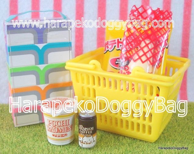 Keywords: Re-ment, Rement, Japanese Toys, Miniatures, Miniature, Dollhouse, Doll House, Puchi, Mini, Kawaii, Cute, Puchi Supermarket, Groceries, Shopping Basket, Boxed Facial Tissue, Canned Coffee, Instant Cup Noodles, Potato Crisps Pack, Potato Chips, Squeezable Mayonnaise Bottle.