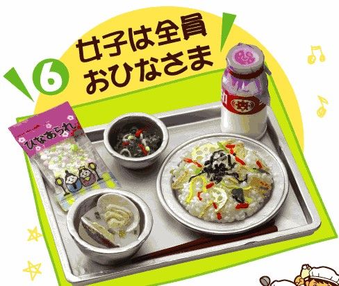 Keywords: Re-ment, Rement, Japanese Toys, Miniatures, Dollhouse, Doll House, Puchi, Mini, Kawaii, Cute, School Lunch, Everyone Itatakimase, Food, Meal, Tray, Cutlery, Dish, Hinamatsuri Festival Food, Chirashizushi Rice, Clam Rice.