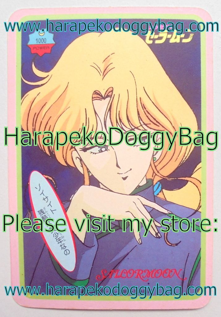 SAILOR MOON CARD CONDITION: The card is in near good condition. There is some wear from handling. There are a few dent marks on the edges and corners. There are a few fine scratch marks on the front. There are some aging marks on the back. There is a slightly heavy crease on the left edge area which is slightly noticeable on the front.