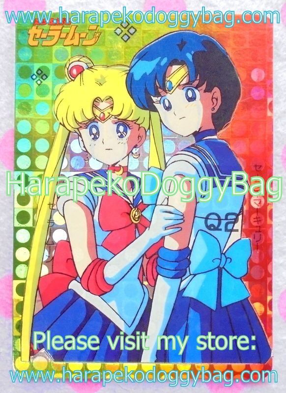 Yamakatsu Card : Sailor Moon Pose Bromide Prism Card - Q2 (1992) Sailor Moon & Sailor Mercury (VARIATION 1) (VERY GOOD CONDITION)