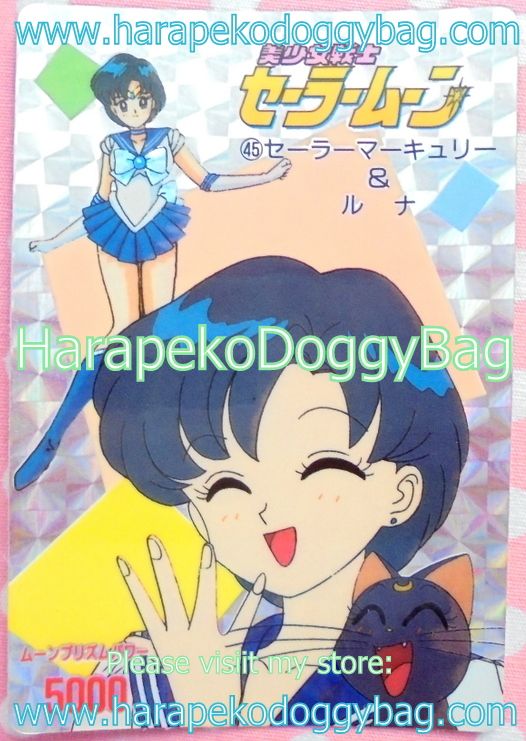 Keywords: Japanese Anime, Shojo, Shoujo, Sailor Moon, Sailormoon, Amada Trading Card, Prism Card, PP 1, Part 1, Pull Pack, 1992, Ami Mizuno, Luna.