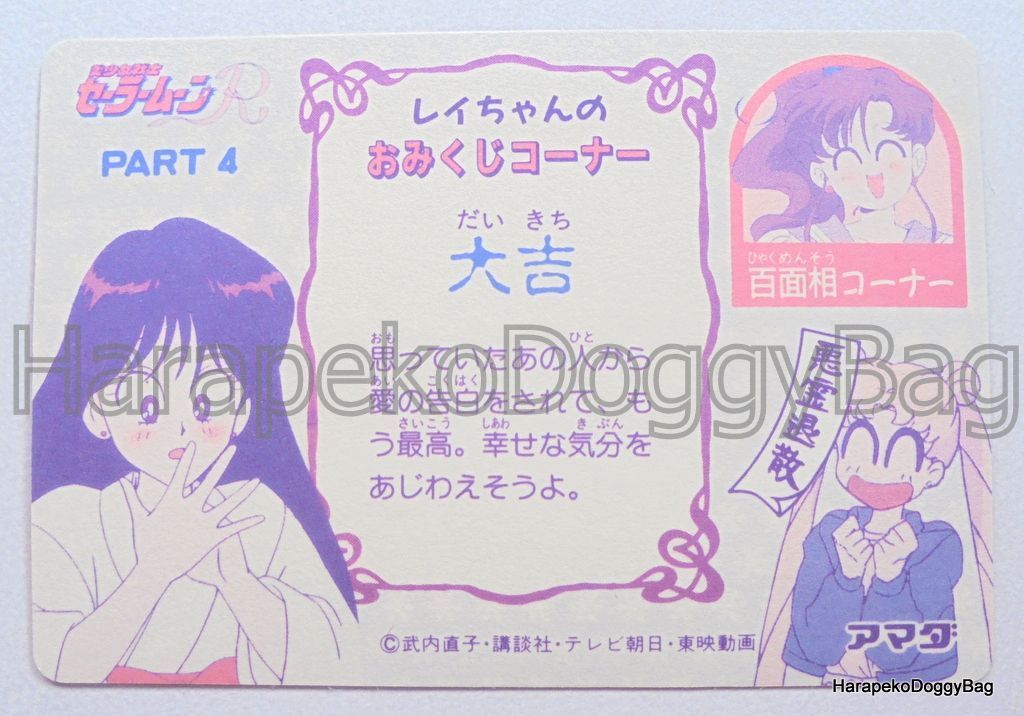 Keywords: Japanese Anime, Shojo, Shoujo, Sailor Moon, Sailor Moon R, Sailormoon, Amada Trading Card, Soft Prism Card, PP 4, Part 4, Pull Pack, Makoto Kino.