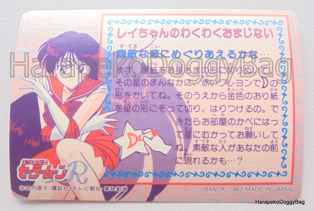 Here is the prism card #74 from "Sailor Moon R : Carddass 3" released by Bandai in 1993.