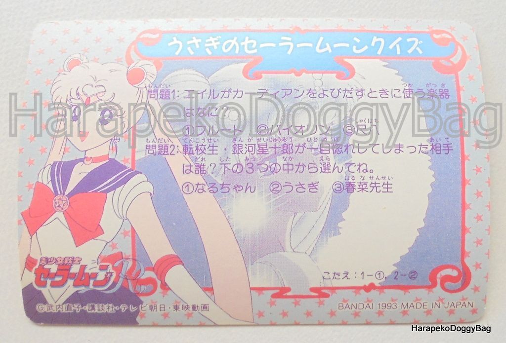 Here is the regular card #104 from "Sailor Moon R : Carddass 3" released by Bandai in 1993.