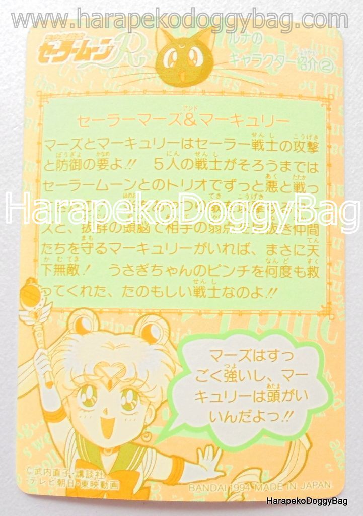 Keywords: Japanese Anime, Shojo, Shoujo, Sailor Moon R, Sailormoon R, Bandai Trading Card, Prism Card, Carddass 5, Part 5, Sailor Mars, Sailor Mercury.
