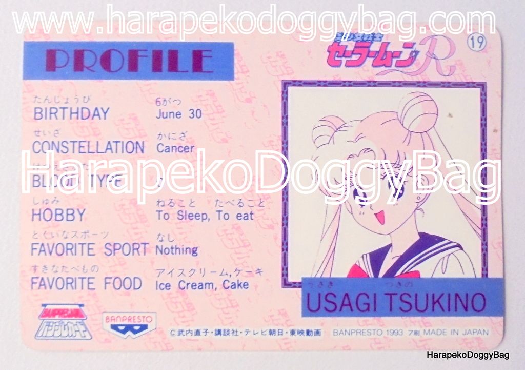 Here is the prism card #19 from "Sailor Moon R : Part 1" released by Banpresto in 1993. It is a 4th print edition.