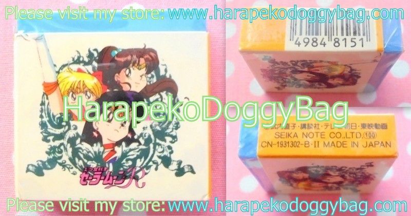 SAILOR MOON ERASER CONDITION: The item is in new and unused condition. Overall, it is in very good condition. The outer plastic packaging has aged. There is some handling wear and the corners of the cardboard around the eraser has some dents.