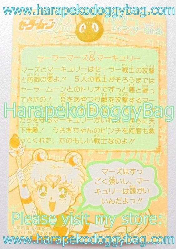 Keywords: Japanese Anime, Shojo, Shoujo, Sailor Moon R, Sailormoon R, Bandai Trading Card, Prism Card, Carddass 5, Part 5, 1994, Sailor Mars, Sailor Mercury.
