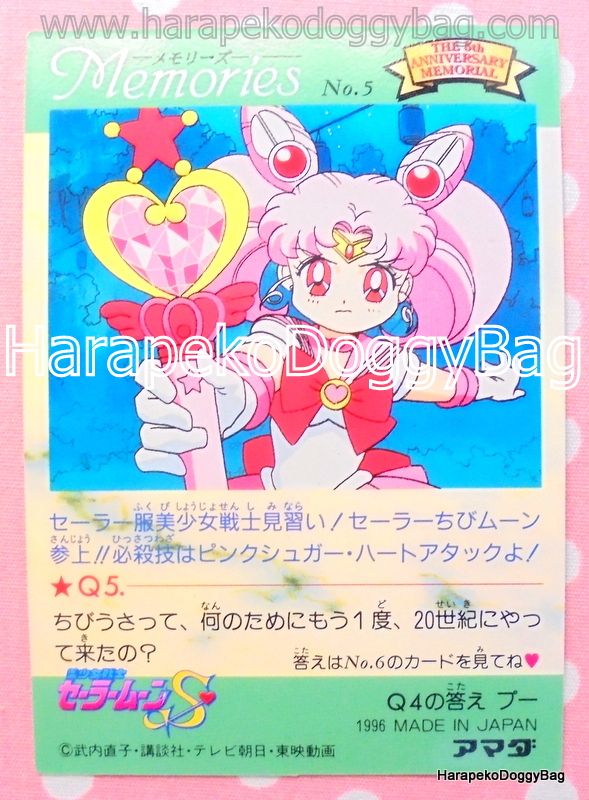 Here is the prism card #5 from "Sailor Moon : 5th Anniversary Memorial Set" released by Amada in 1996.