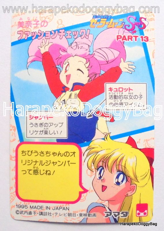 Keywords: Japanese Anime, Shojo, Shoujo, Sailor Moon, Sailor Moon Super S, Sailor Moon SS, Sailormoon, Amada Trading Card, Soft Prism Card, PP 13, Part 13, Pull Pack, Sailor Chibi Moon.