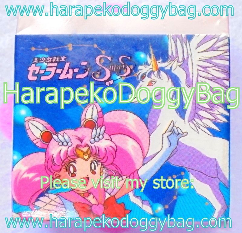 SAILOR MOON ERASER CONDITION: The item is in new and unused condition. Overall, it is in good condition. The outer plastic packaging has aged a lot and it has opened areas. There is a lot of handling wear and the corners of the cardboard around the eraser has very slight dents.