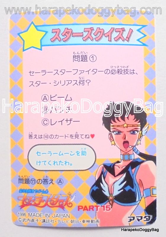 Keywords: Japanese Anime, Shojo, Shoujo, Sailor Moon, Sailor Stars, Sailorstars, Amada Trading Card, Soft Prism Card, PP 15, Part 15, Pull Pack, 1996, Eternal Sailor Moon.