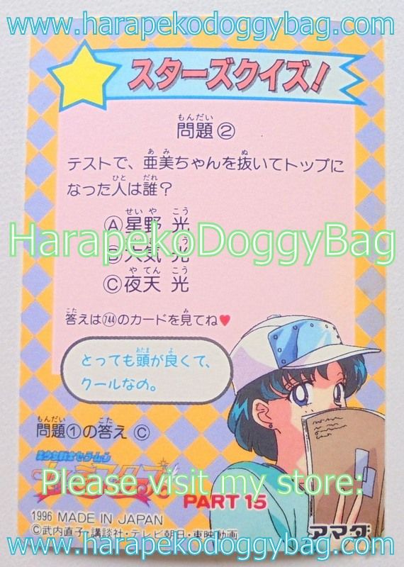 Keywords: Japanese Anime, Shojo, Shoujo, Sailor Moon, Sailor Stars, Amada Trading Card, Soft Prism Card, PP 15, Part 15, Pull Pack, 1996, Sailor Chibi Moon.