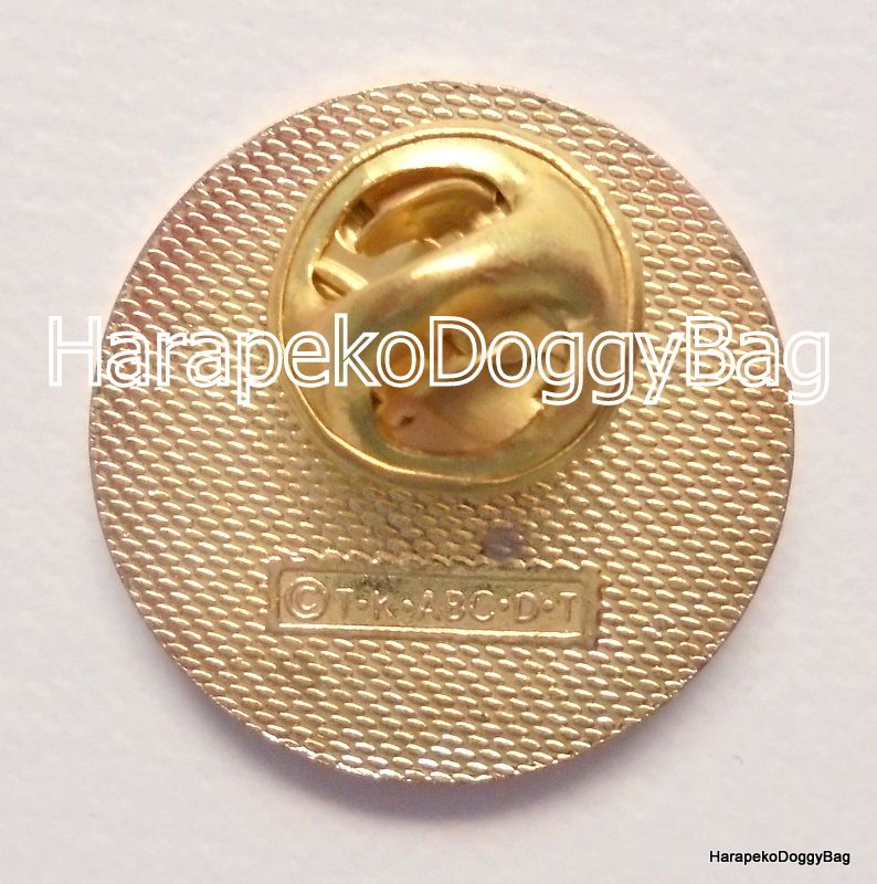 The metal pin is a promo item that was sold with Furuta chocolate snack.