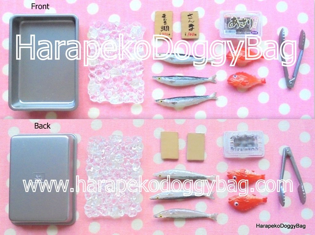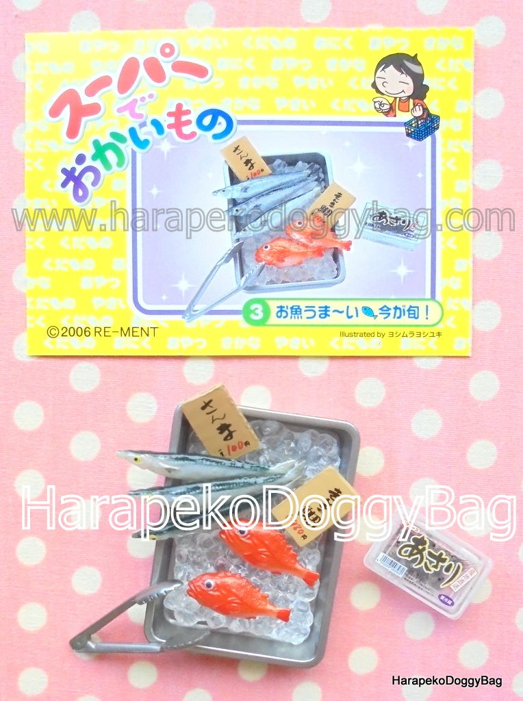 Keywords: Re-ment, Rement, Japanese Toys, Miniatures, Miniature, Dollhouse, Doll House, Puchi, Mini, Kawaii, Cute, Supermarket, Shopping, Seafood, Fish, Tongs, Ice, Kinmedai, Sanma, Asari.
