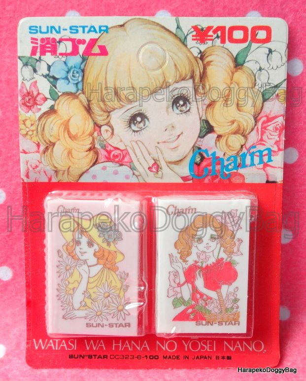 Vintage 1970s : Sun-Star : "Charm" Eraser Set : Yukiko Tani Illustration